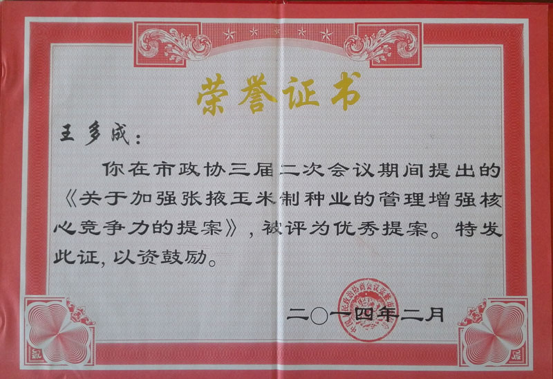 張掖市多成農(nóng)業(yè)有限公司是一家以玉米雜交種生產(chǎn)經(jīng)營為主的農(nóng)業(yè)科技型民營企業(yè)。公司由兩個種子加工廠和1個良種繁育基地及1個優(yōu)質梨示范基地組成。加工廠占地15.8萬平方米,擁有種子加工線3條,檢驗室2個,年生產(chǎn)、加工能力2000萬公斤。有良種示范基地2000畝,優(yōu)質梨示范基地500畝。固定資產(chǎn)總值超億元。 公司自成立以來,選育、示范推廣“正德”系列玉米新品種3個,年銷量1000多噸。先后與東北、華北、黃淮等地的多家大型種子企業(yè)建立了穩(wěn)定的……[查看全文] |